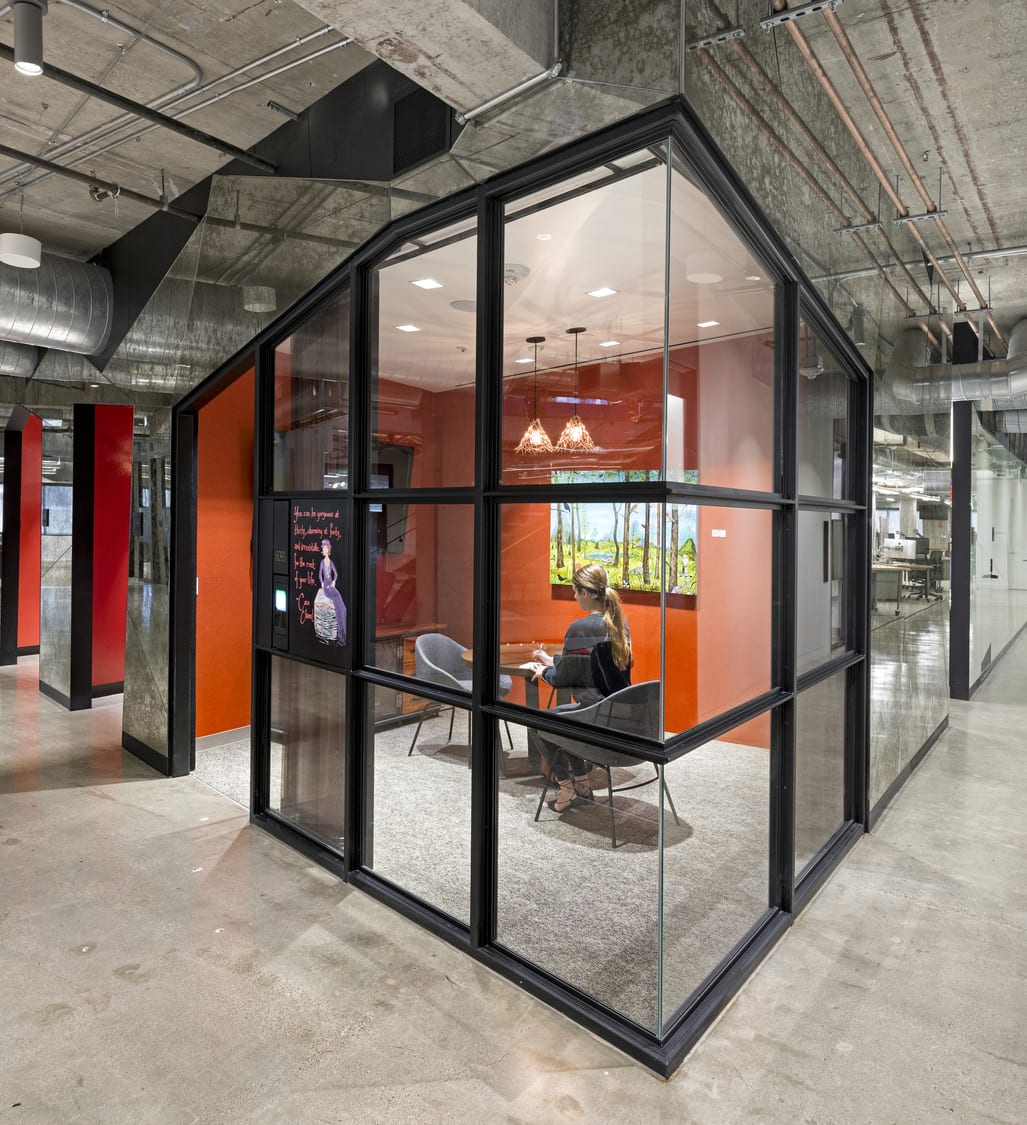 As Capital One realized, concrete isn't just for flooring. When it came time to design their Digital Lab in San Francisco, all parties agreed that playing off of the existing concrete structure was in-line with their mission statement of transparency, and their desire to create an edgy creative space for the digital masterminds inhabiting it. As an added bonus, the concrete columns seen throughout the building also offer convenient access to power and data fences, improving connectivity and adding functionality to several multipurpose meeting areas.