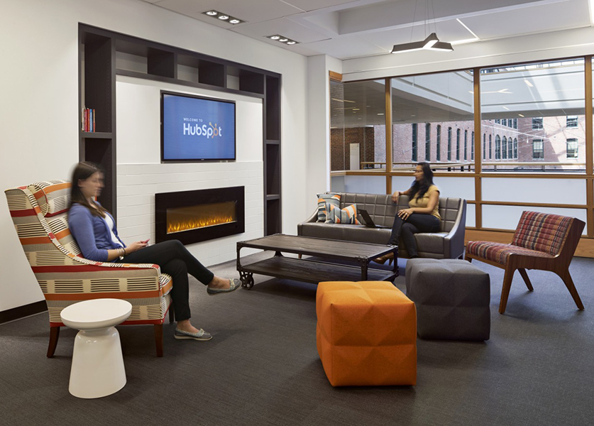 Hubspot in Cambridge, Massachusetts. Photo by Robert Benson.This lounge in the Northeastern United States warms up the workplace throughout the region’s notoriously harsh—and long—winters.