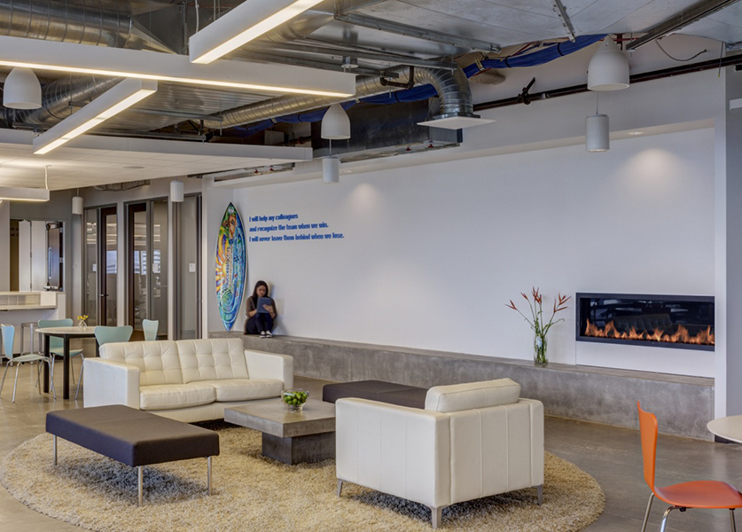 Success Factors in San Francisco. Photo by Sherman Takata.Just off the cafe, staff can cozy up to the fire on the chillier days in the city by the bay.