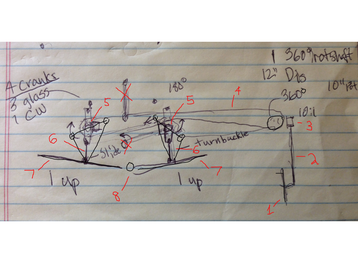 A gear system that controls the different elements is expressed outwardly on the lobby walls, of which there are four gears. A hand-cranked wheel on the wall turns a central spine, a steel rod with two gears, which pivots a wing. Two gears operate each steel-framed wing, which is five to eight feet in width and composed of custom antique glass. The alternate shifting of each wing introduces movement and a sense of migration across the lobby.