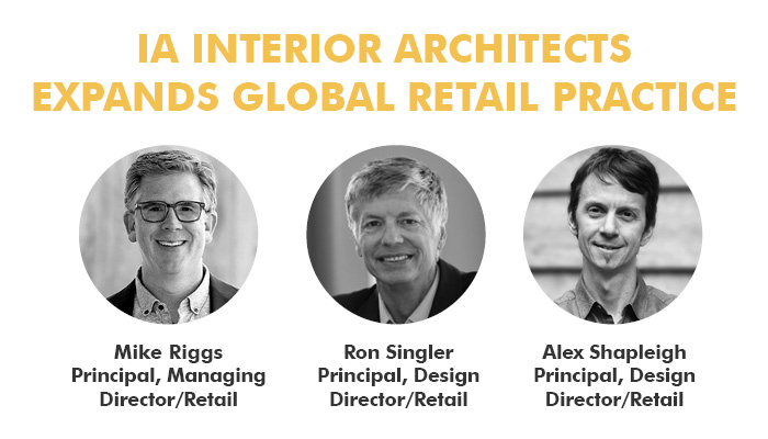 IA Interior Architects is pleased to announce the continued growth of our retail practice group with the addition of a new team that will be based in Seattle, WA. This group will be led by three retail experts: Mike Riggs, Managing Director/Retail; Ron Singler, Design Director/Retail; and Alex Shapleigh, Design Director/Retail. All three are recognized innovators and bring extensive experience in this market sector to the firm. This new team will work in conjunction with our New York Retail practice group, enhancing our capabilities and service offerings and expanding our global reach.