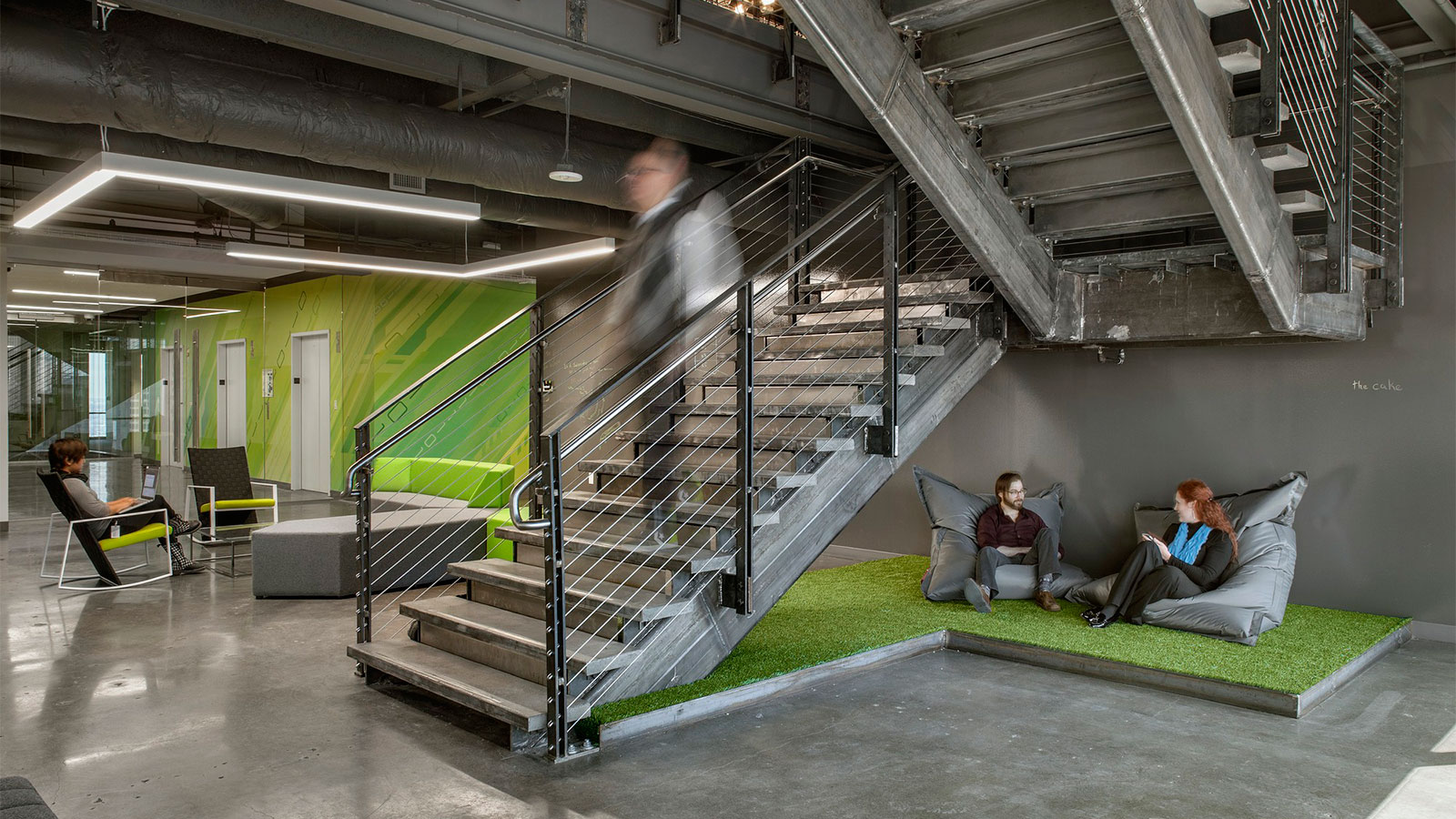 - Interconnecting stair encourages staff to interact and move throughout the day