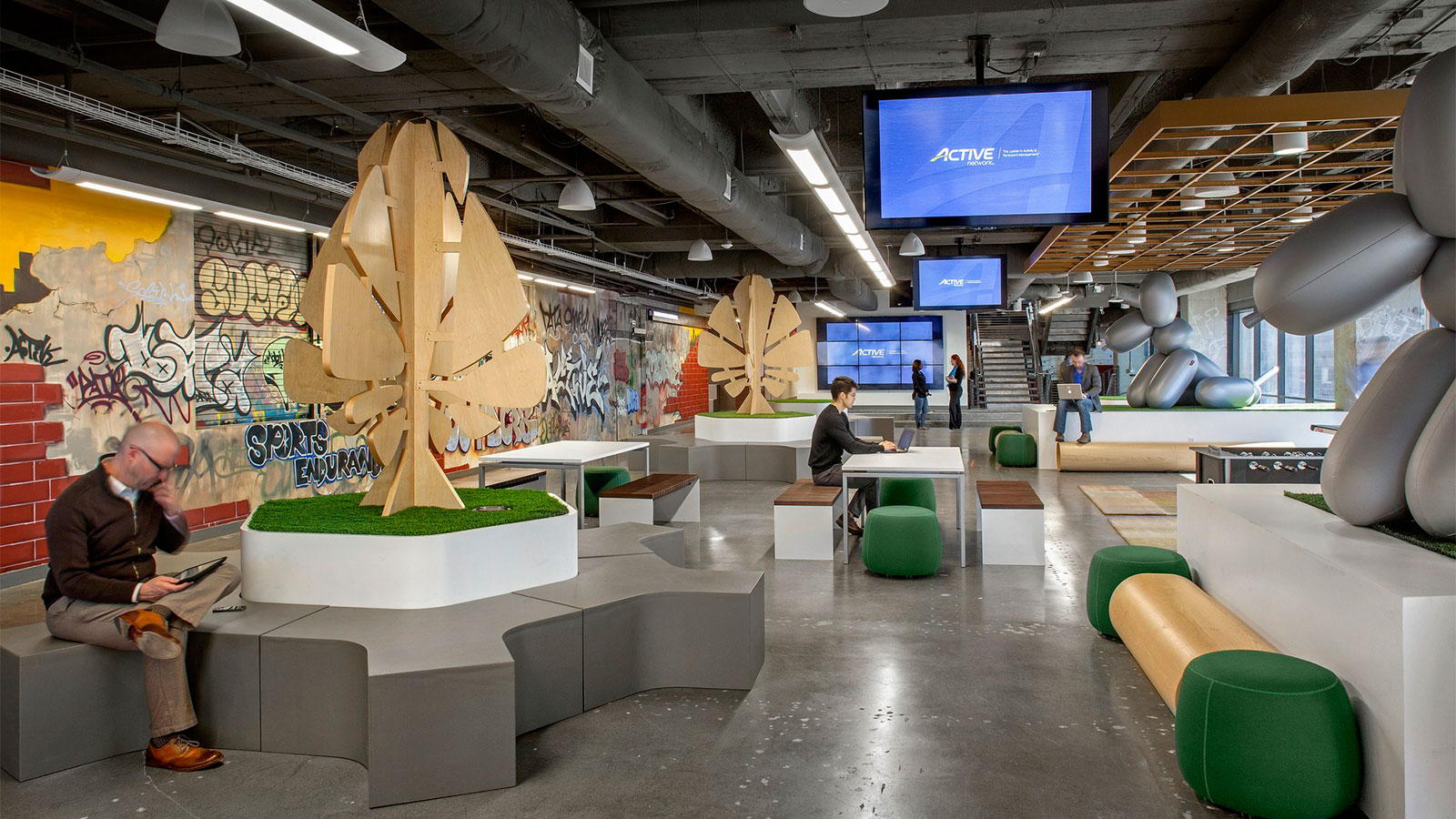 - Custom brand elements that incorporate Active Network’s culture throughout the building’s open floorplates