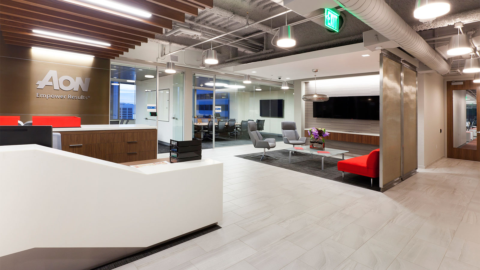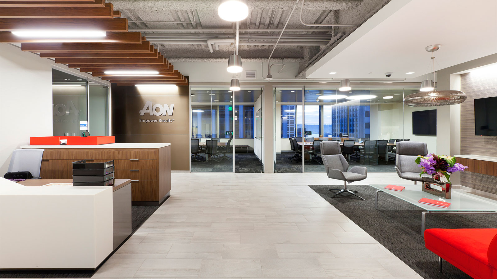 - Diverse meeting and conference spaces and glass-front private offices