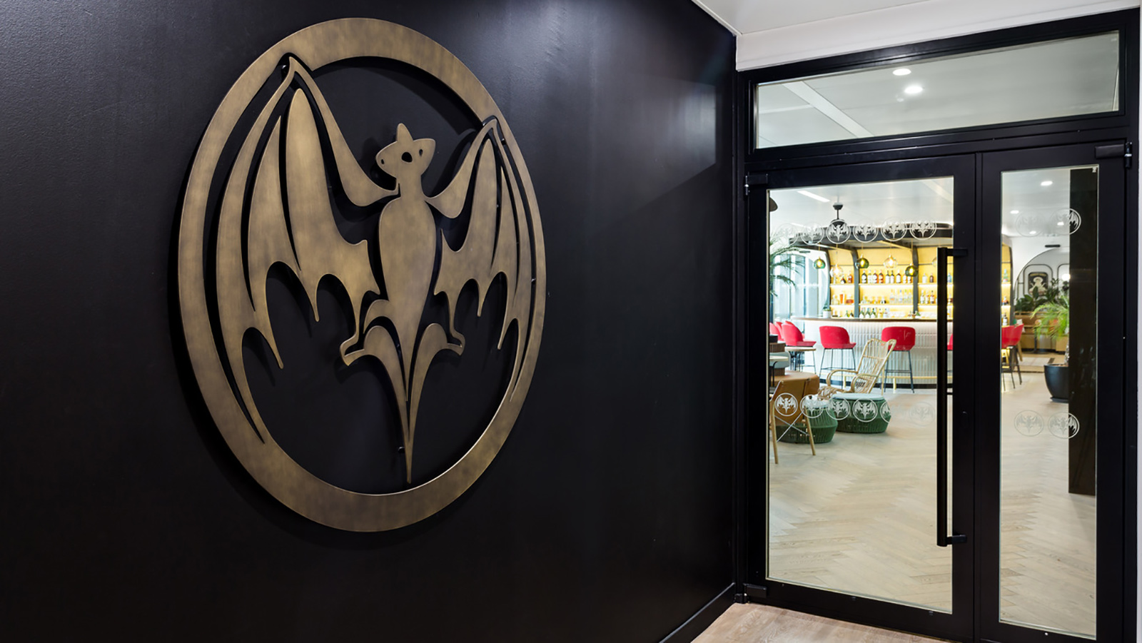 - Graphic timelines, feature walls, vintage Bacardi posters, and the iconic Bacardi logo, the bat, represent the global brand