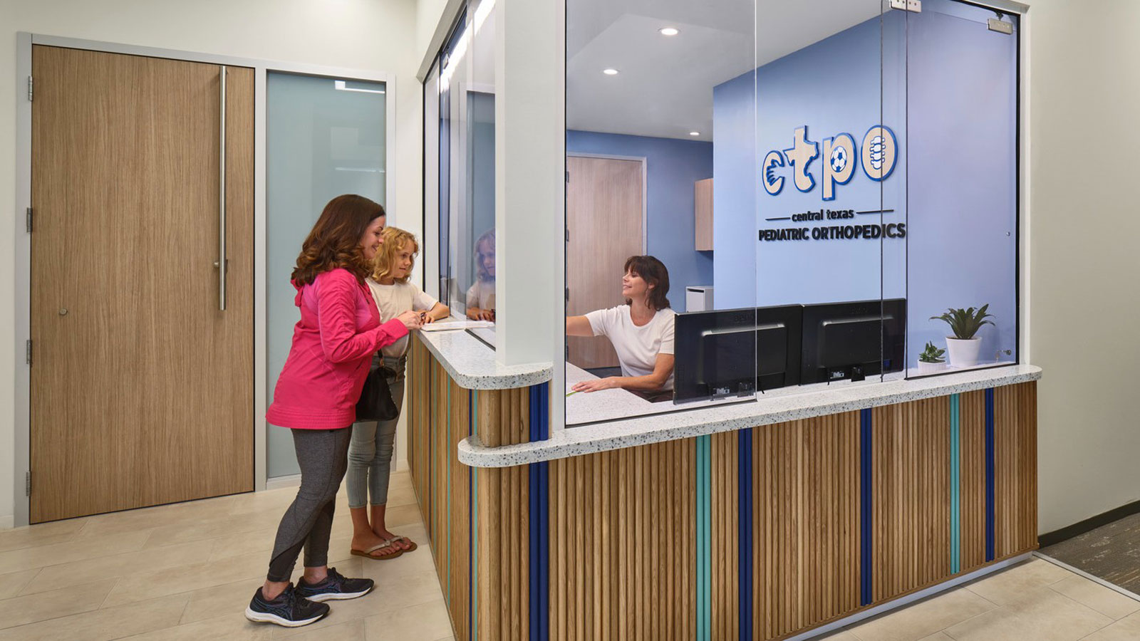 An orthopedic practice specializing in pediatrics, Central Texas Pediatric Orthopedics tasked IA to design their new Austin clinic. Envisioning a clean, functioning, and calming space that caters to both patients and staff, the IA design team worked closely with CPTO to create a a hospitable and friendly environment.