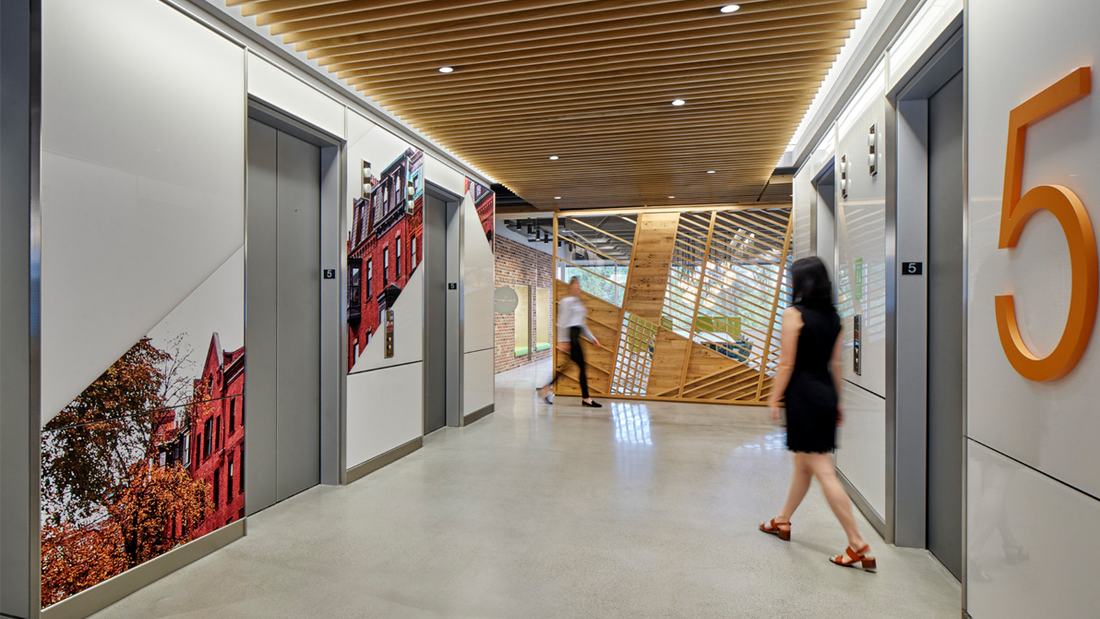 Created in collaboration with the client’s internal branding department, an experiential graphic package is fully integrated into the architecture, celebrating the client’s mission to serve homebuyers.