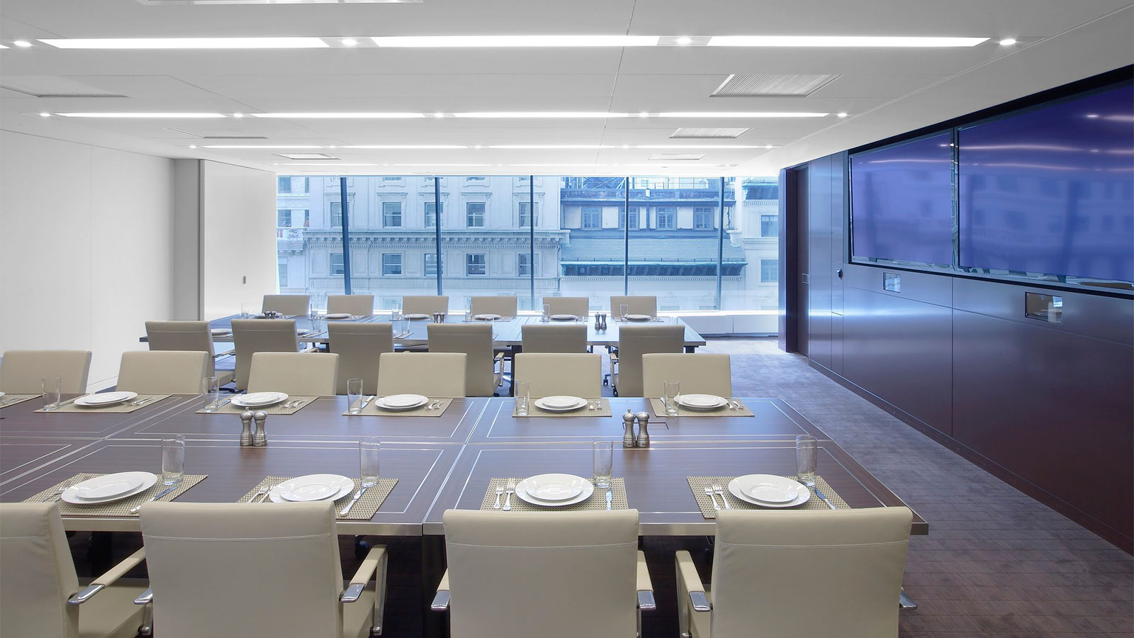 - Conferencing center, serviced by commercial-grade food service pantry, 5 combinable multi-purpose conference rooms with motorized partitions