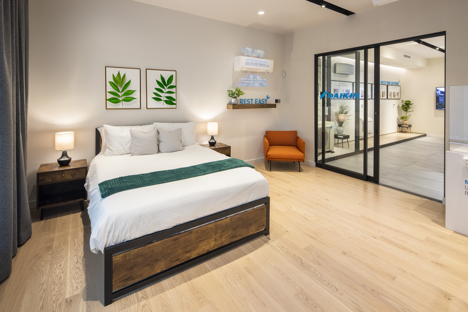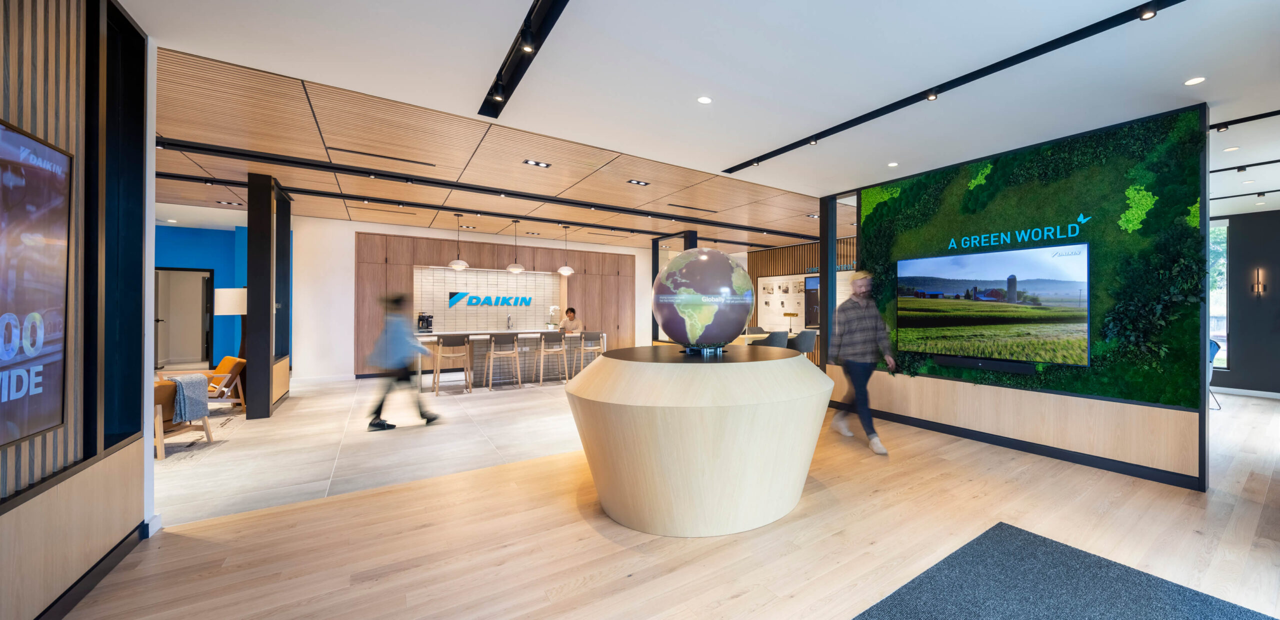 Daikin's new Design Center redefines the traditional HVAC showroom by merging technical expertise with the comfort of a residential environment. The space reflects Daikin’s ethos of “Perfecting the Air We Share,” emphasizing comfort, sustainability, and wellbeing in a setting inspired by the Pacific Northwest.