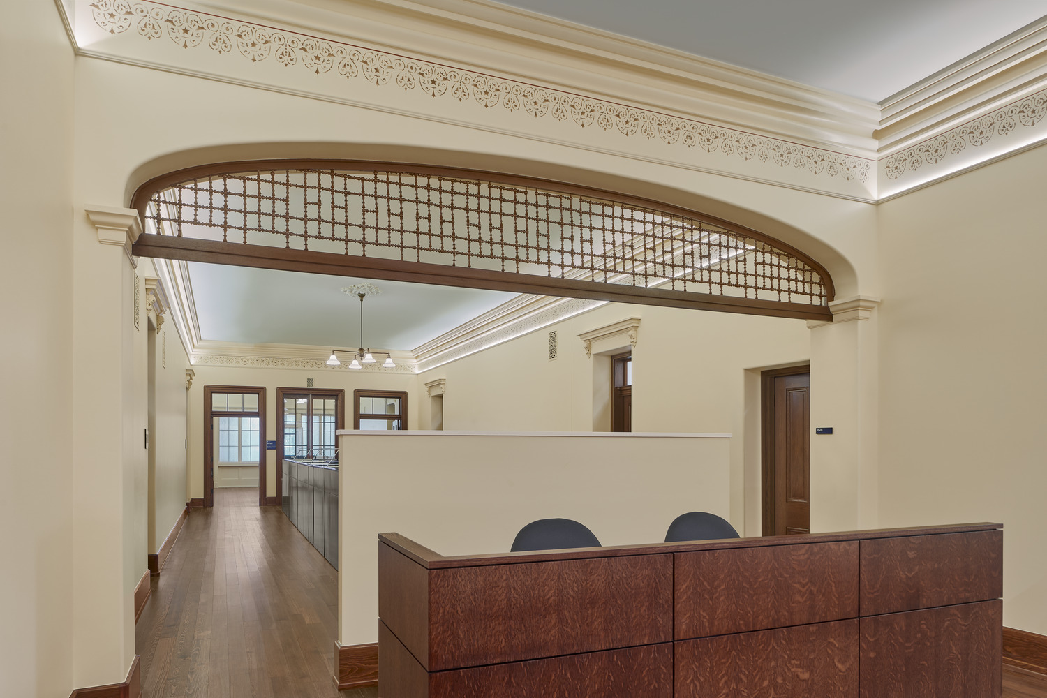 As part of the campus' Phase 2, IA was the interior/space planning designer of the design-build team for the renovation of DHS' new headquarters building, the Center Building. The IA team completed a program of requirements, workplace requirements report, block-and-stack, schematic and design development packages, and construction documents (BIM). The 300,000 square-foot building was re-purposed from a mental hospital and is part of the national register of historic places. It houses over 720 DHS staff that relocated from the Nebraska Avenue Complex (and multiple other leased locations) into the consolidated, open, and enclosed office space.