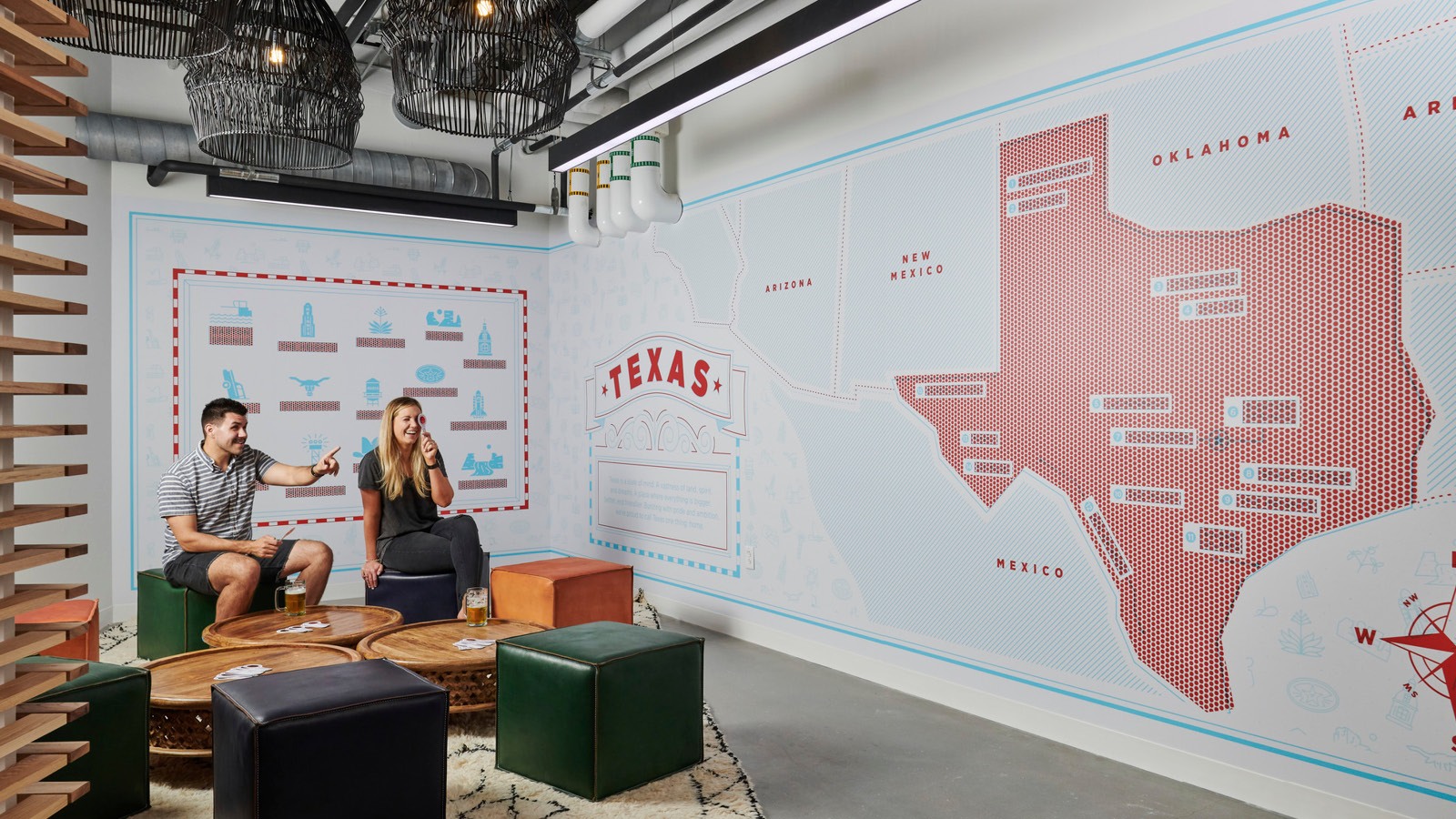 Based on the concept, “From Marfa to the Gulf Coast,” the space celebrates textures, tastes, treasures, and makers from the Texas terrain - Commissioned Texas-based artists for pieces found throughout the space