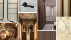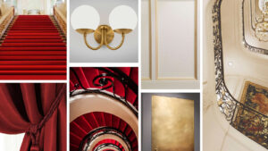 Entering the Palace, the grandeur of the original architecture remains largely intact. Exuding classic refinement, the main hall is enriched by made-to-measure chandeliers and red marble, accentuating its height and majesty. The reception area echoes the space with a monochromatic color scheme, gold accents, and layered patterns.