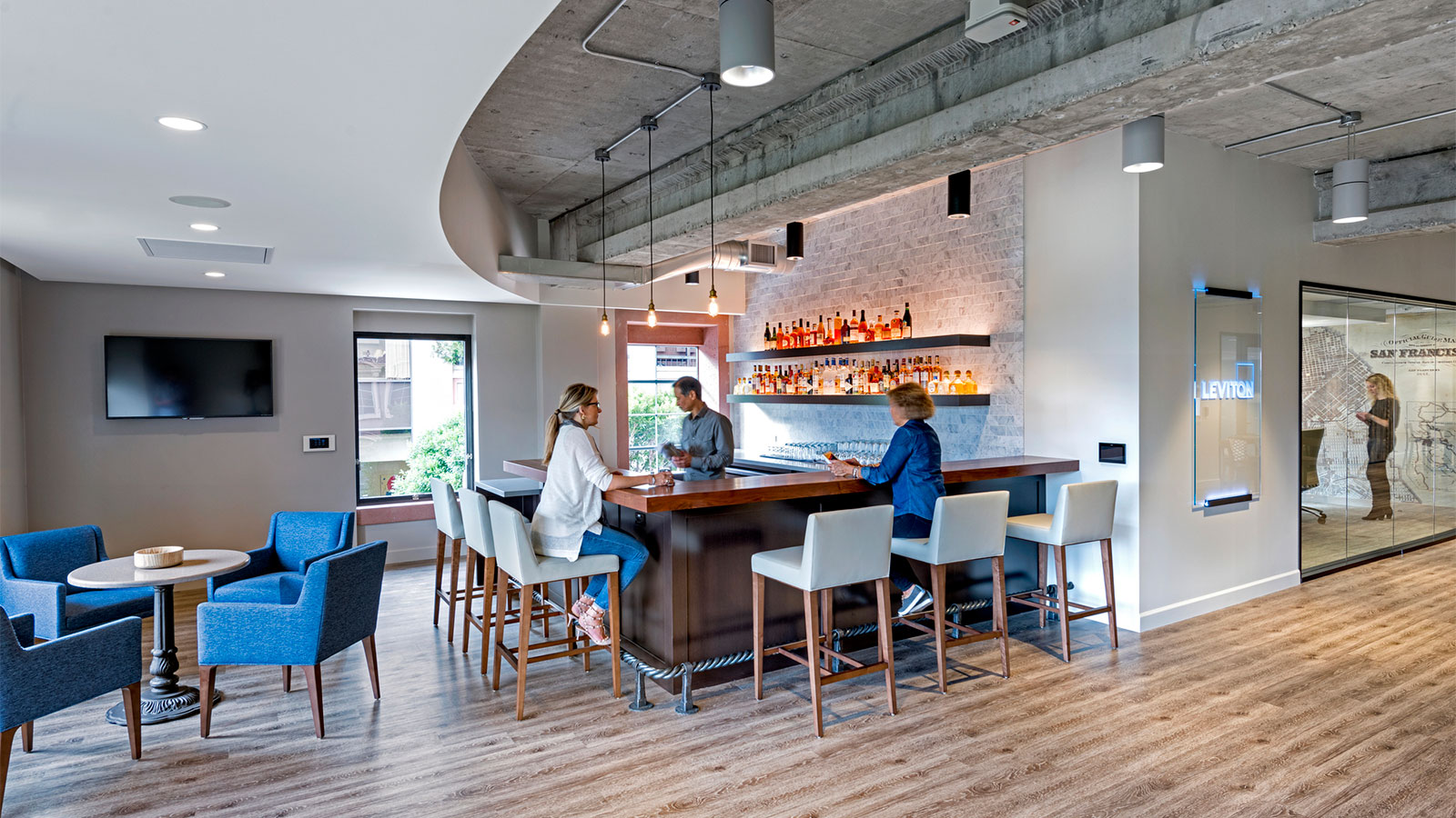 Bar and lounge area designed for hosting events