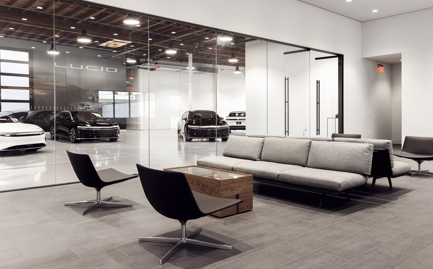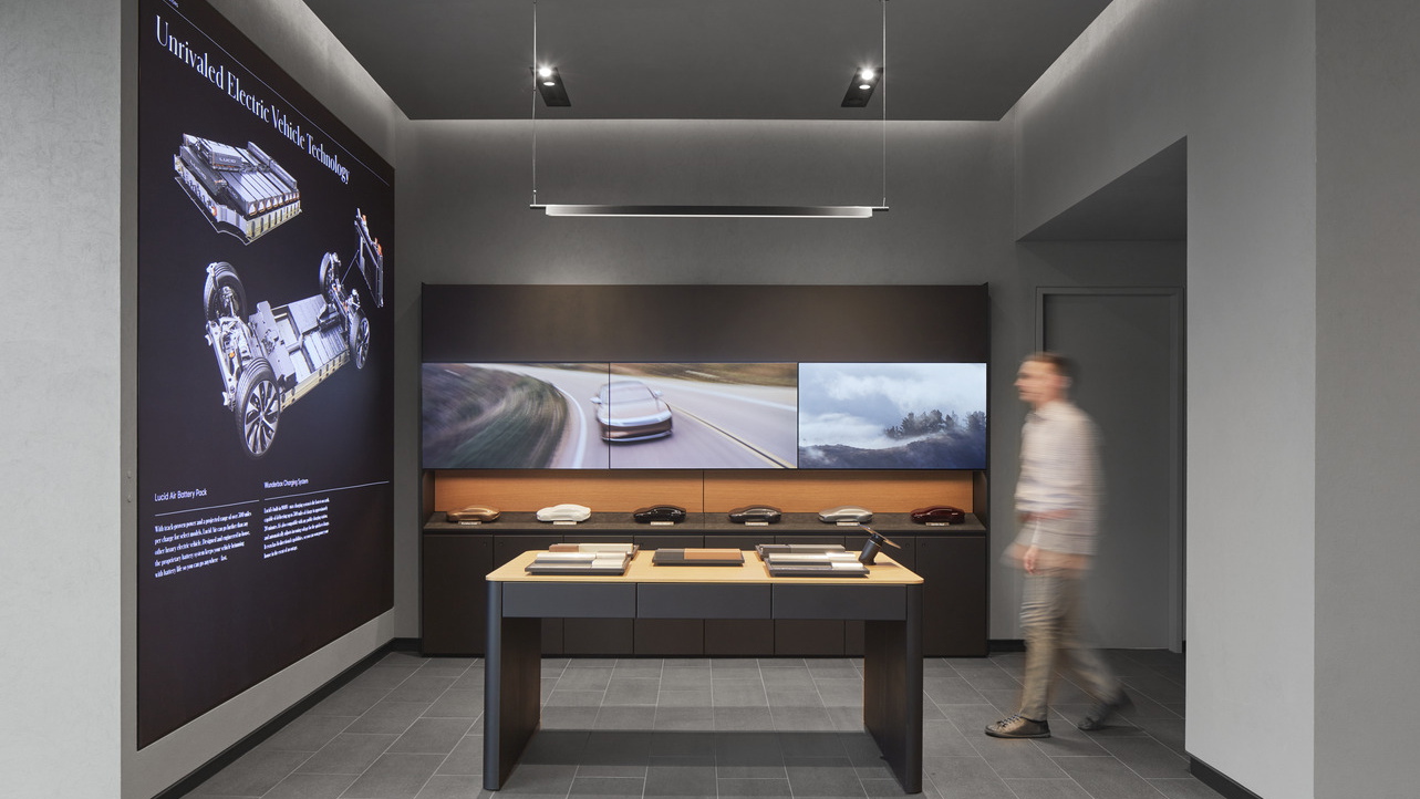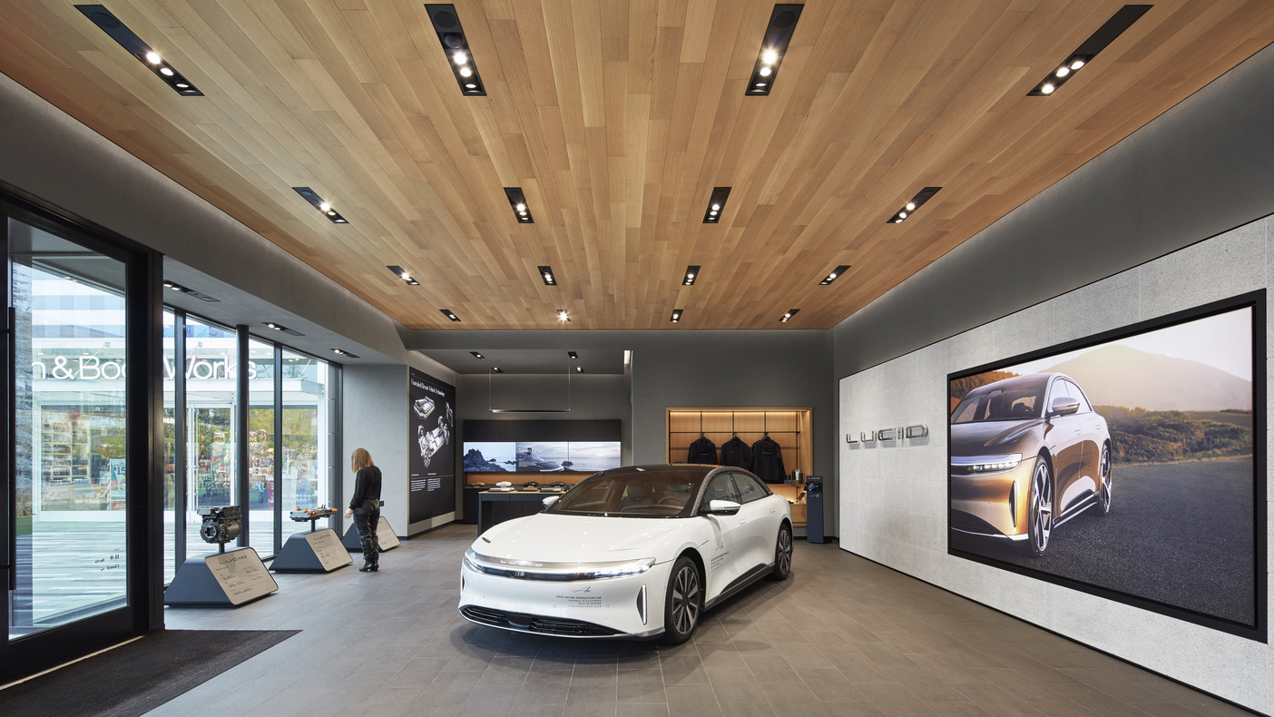 The term luxury implies an experience of comfort, ease, and gratifying indulgence, the result of intense forethought, discerning perception, and matchless design, as well as meticulous attention to detail—often invisible but critical to the user experience—delivered with a finesse that transcends the ordinary. The launch of a luxury electric vehicle like the Lucid Air, envisioned to outdistance the competition in performance and sustainability, compelled a setting that would inspire and educate potential owners, initiate the luxury experience, and carry the brand into the future. Each showroom supports brand expectations and is also optimized for a national retail rollout.