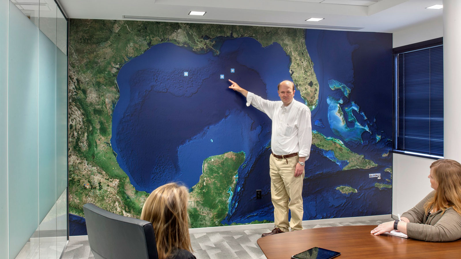 - Feature walls with environmental graphics: full-size 3D topography wall and full size magnetized vinyl graphics