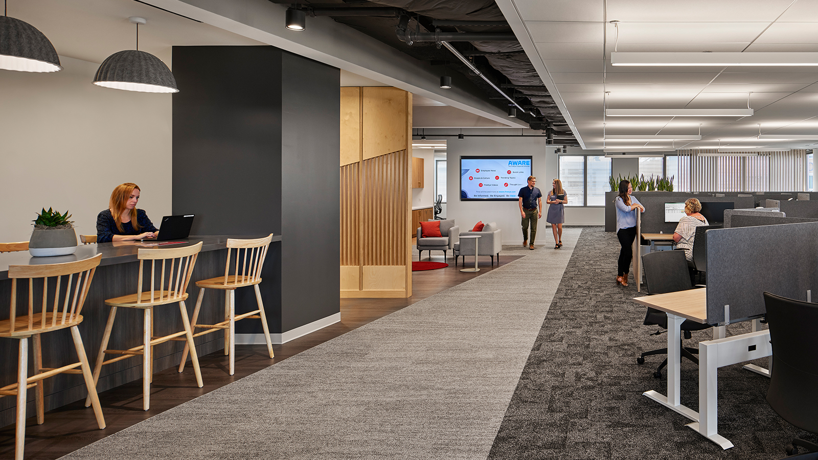 - Shift from 100% assigned workstations to a hybrid model that promotes the office as a primary place for social connection