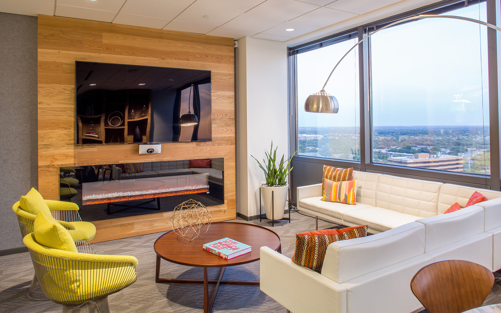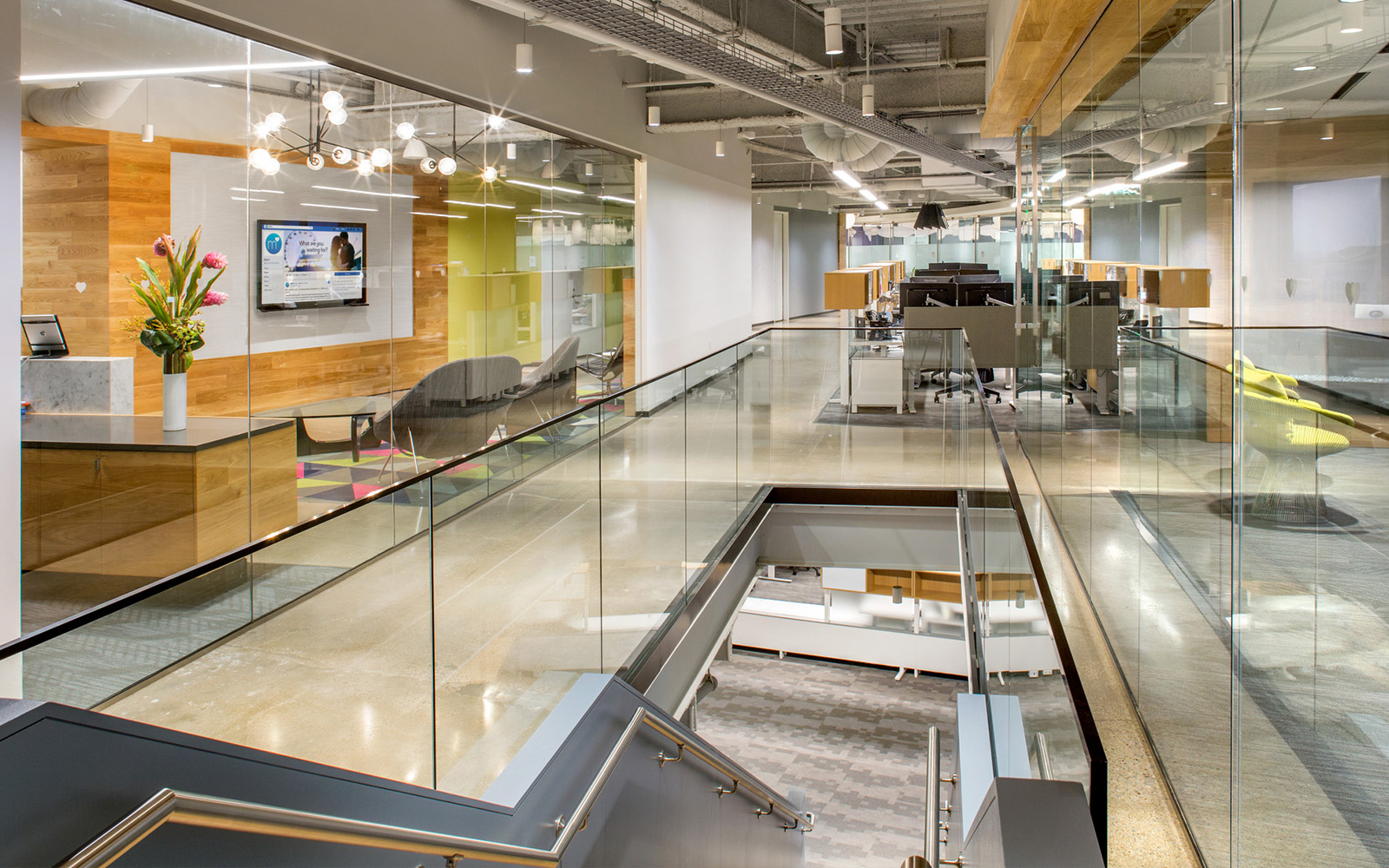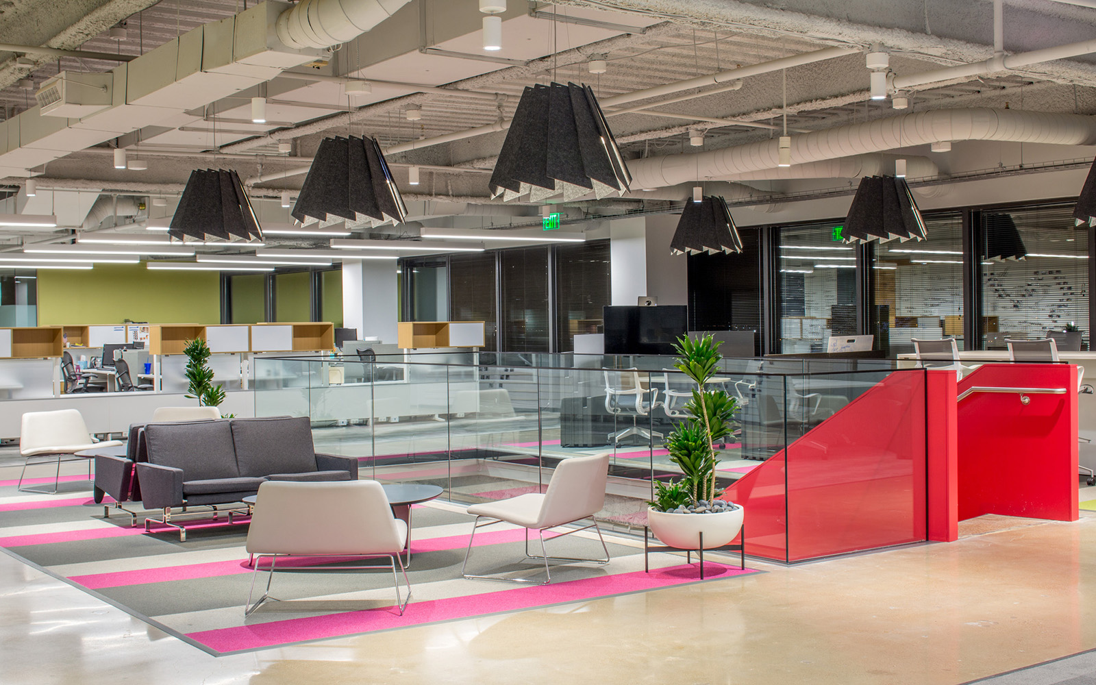 - Reconfigurable spaces and modular desking system within open plans