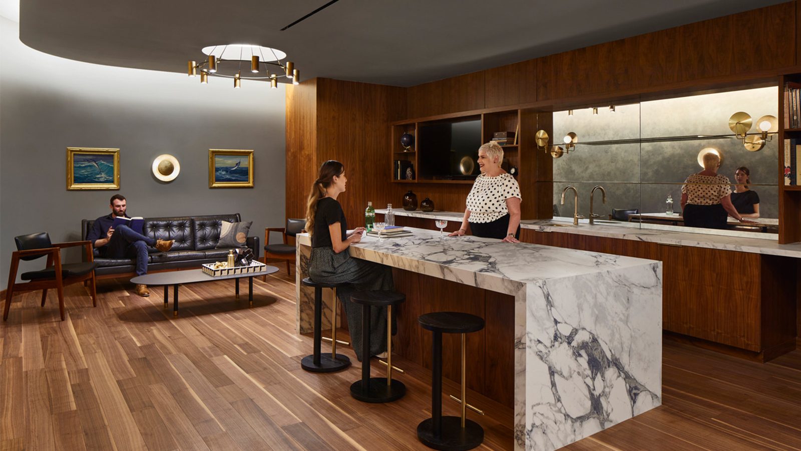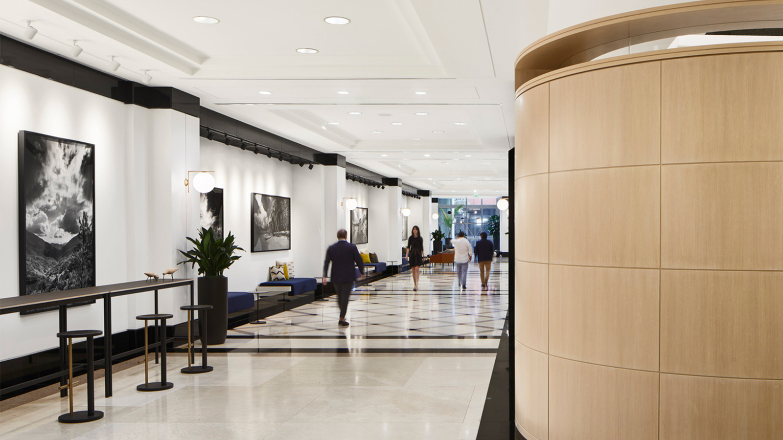Tenants can reserve touchpoint spaces, including a library and conference room. Underlining the importance of positive lighting for productive work, existing wood panels are refinished to brighten the space. New amenities that include a coffee bar and retail opportunities attract visitor engagement, reflecting Parkway Properties’ hospitality-driven culture.