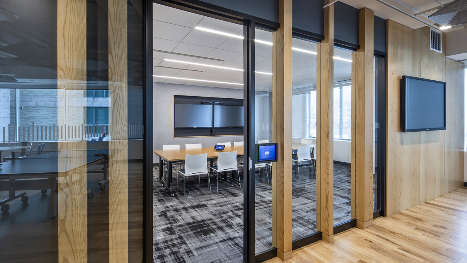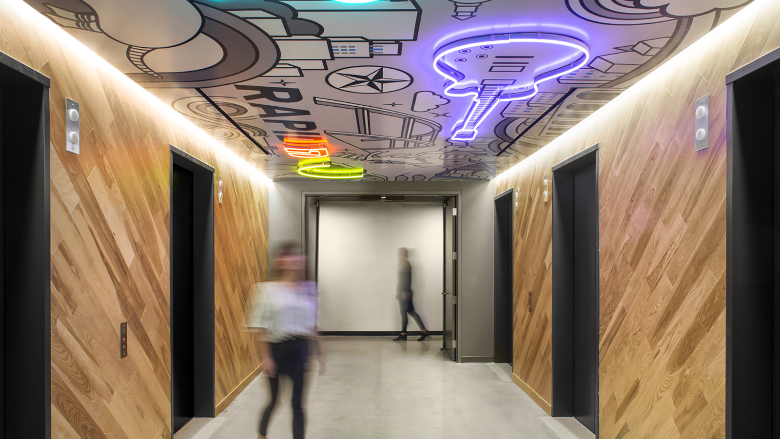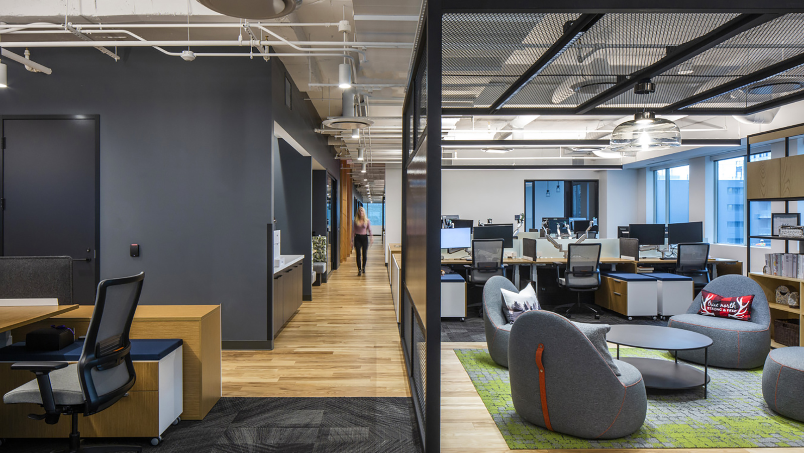 Shared themes are apparent globally, such as the One Moose mascot that represents all achievements and successes are the result of a team—derived from the singular and plural grammatical use of moose. Global offices also feature elevator lobby murals with the moose amid local icons and destinations. This consistent graphic language ties together company-wide and local culture.