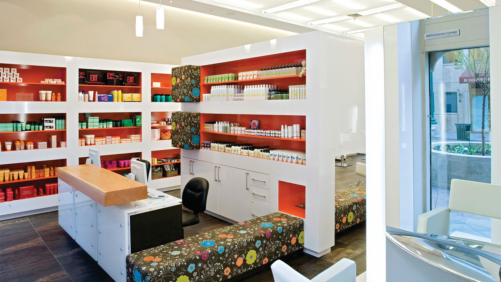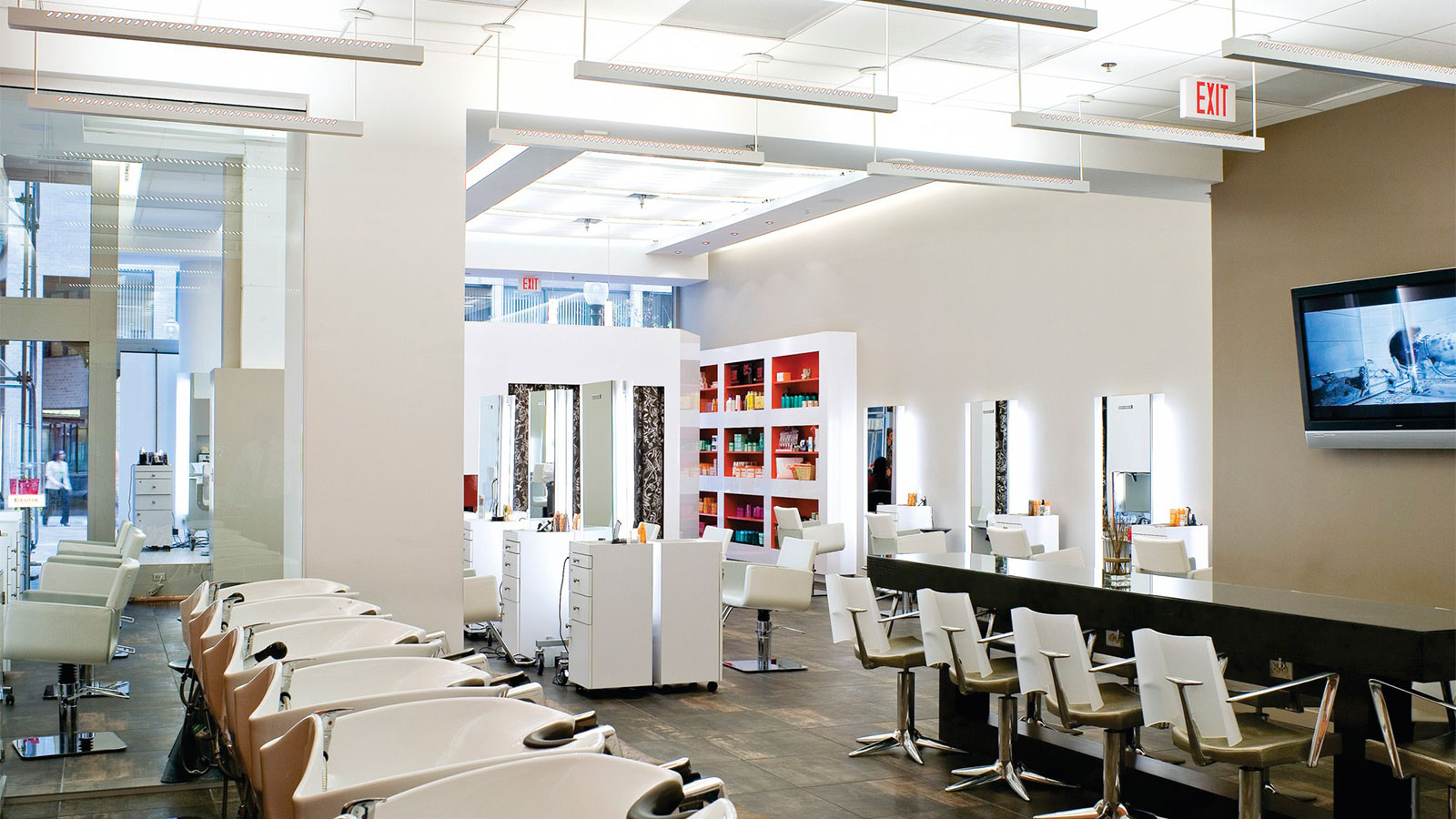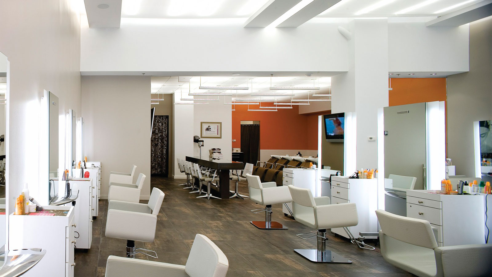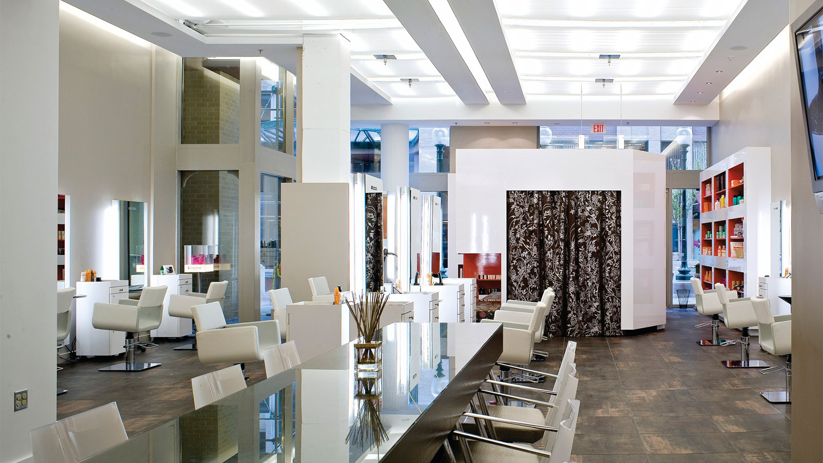 - Full-service salon including styling, pedicure/manicure stations, private clinician rooms, and back-of-house functions