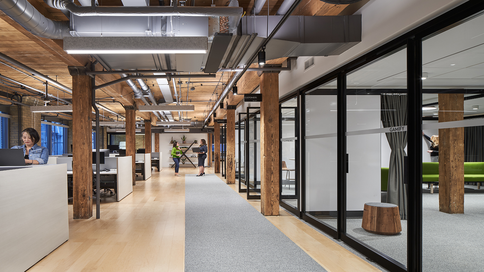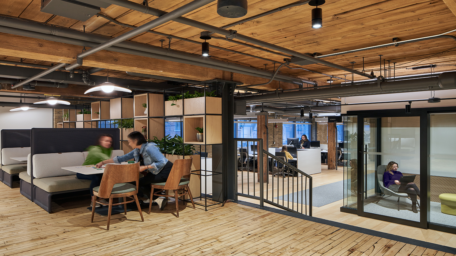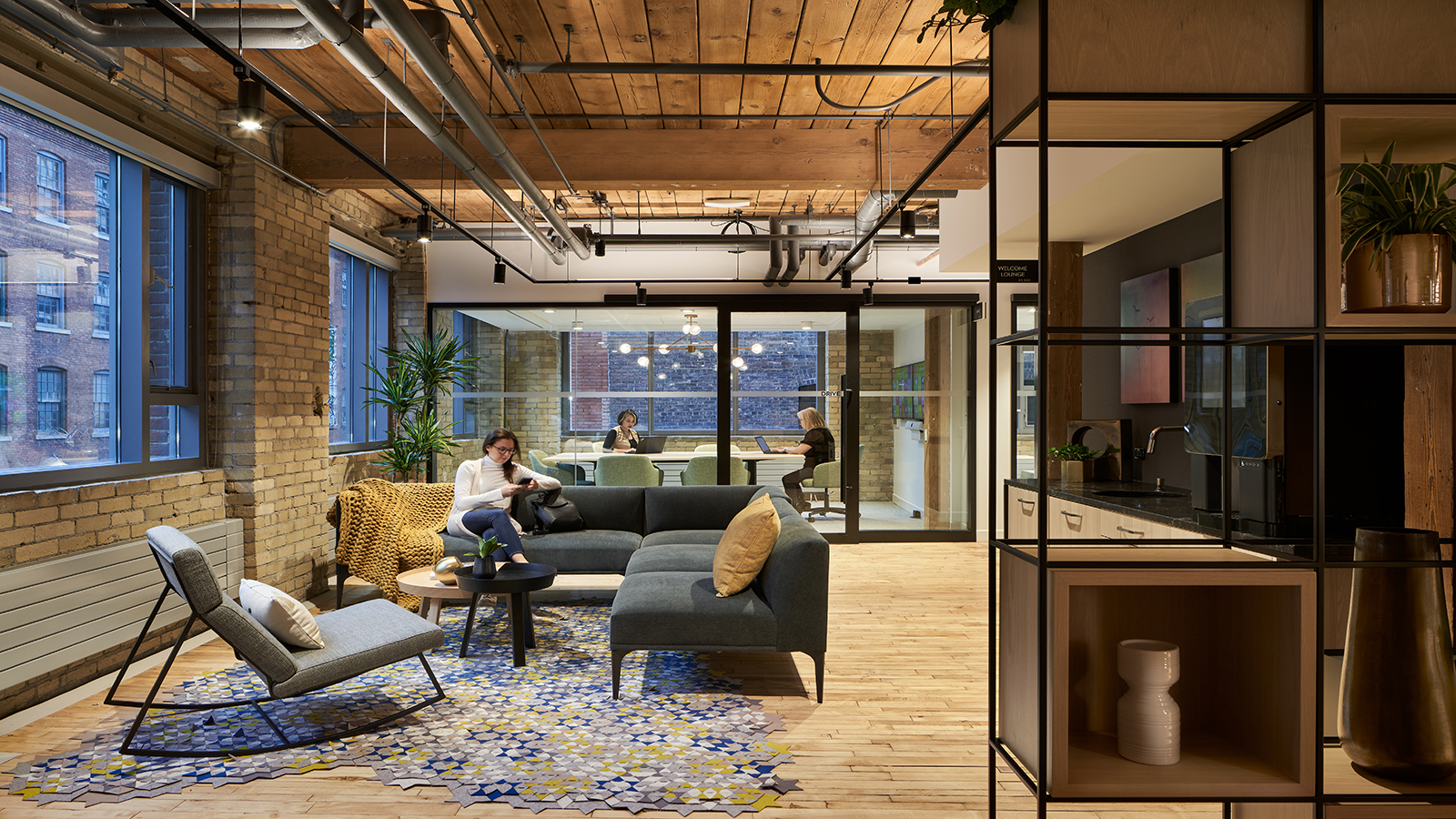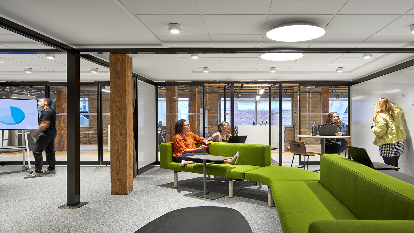 Sobeys Inc., Canada’s Family Grocery Store, dates back to 1907 and today boasts over 1,500 stores nationwide. The company strives to stay current with developing trends, anticipating customers’ future needs by providing new service offerings, products, and delivery models. With that in mind, a 25,000 square-foot space in a historically designated 1920’s brick and beam building in downtown Toronto was specifically chosen and designed to support Voila by Sobeys, the company’s e-commerce team. While honoring the structure’s original architecture, the design creates a forward-looking, state-of-the-art innovation hub to retain and attract tech-savvy talent. Comfortable, high-functioning, and user-focused, this downtown extension to the company’s suburban campus marks a transition to activity-based work and unassigned seating, a shift in contrast to Sobeys’ traditional way of working.