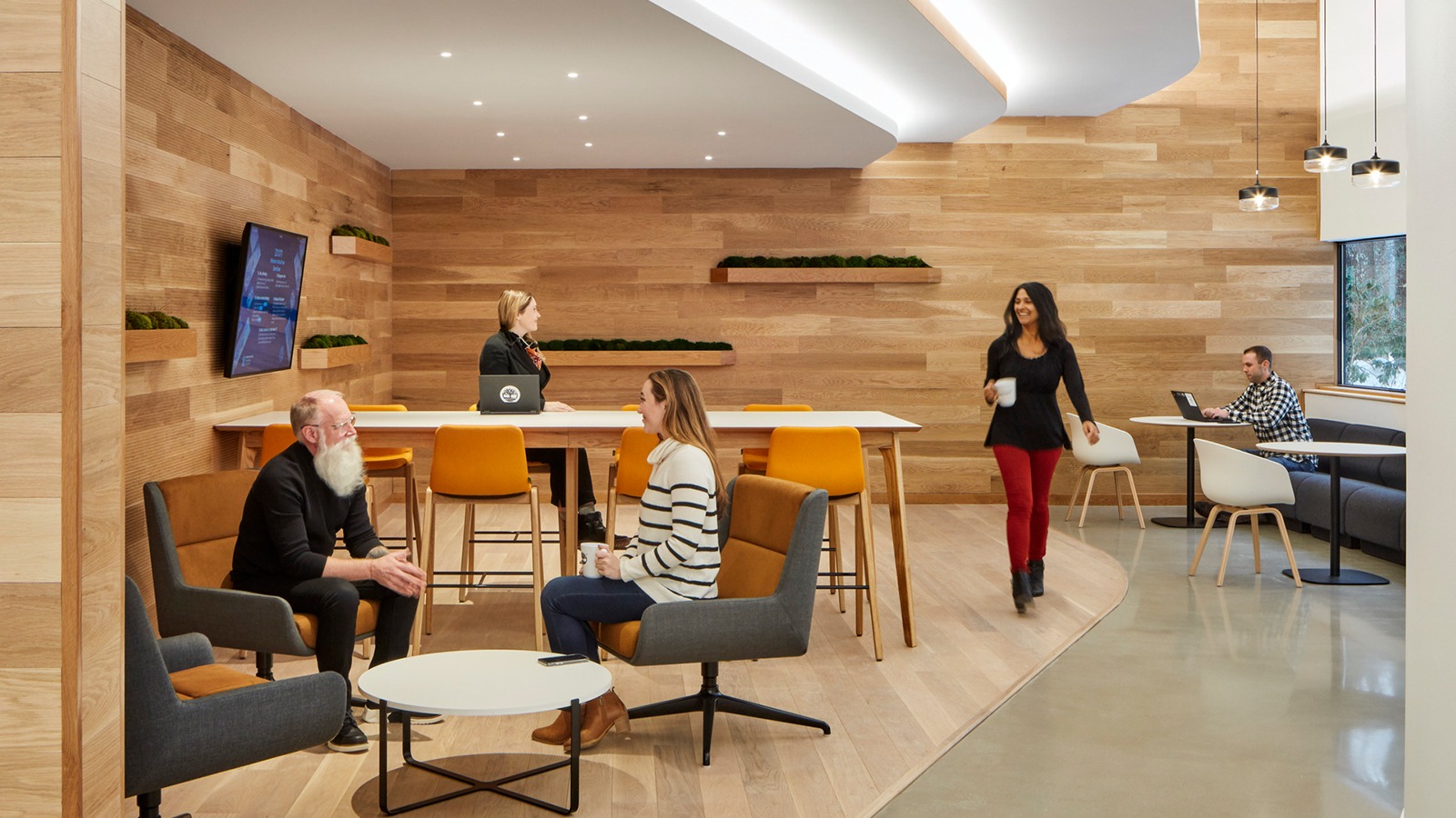 Iconic outdoor lifestyle brand Timberland reinvigorated its global headquarters in Stratham, New Hampshire, with a 20,000 square foot renovation. The environment's transformation aligns with Timberland’s purpose and creative vision, which guides everything the brand does. While the overall footprint didn’t change, the workplace is now a collaborative, energetic, and progressive environment that exemplifies the culture of Timberland. To spearhead the transformation, Timberland tapped IA Interior Architects to design an overall experience comprised of unique spaces that would immerse employees, business partners, recruits, vendors, and customers in the Timberland brand.