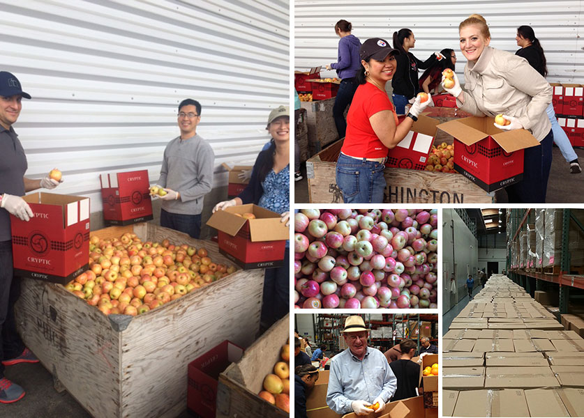 At SF Food Bank, a team of 11 IA volunteers donated 33 hours of work over a two-day period. “When you look at food security, the most costly part is produce, and the other food banks can’t distribute produce because they don’t have the volunteers we do to sort in time—otherwise it rots,” explains Sean Rosas, manager of volunteer services at SF Food Bank. “Through our ‘farm to family’ program, we have millions of pounds to box, sort, and clean.” He credits the agency’s flexibility to distribute fresh fruit and vegetables so efficiently to the large number of volunteers that power its sorting line.