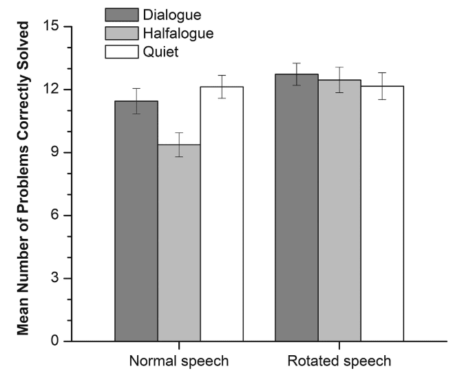 Results not only verified that halfalogues were more of a distraction than dialogues, but also that when such conversations were conducted in intelligible speech (a recognizable language versus a foreign language, for example) they proved to be more distracting to users. Most importantly, this data supported the semantic (un)predictability model of thinking, meaning that background phone conversations are more distracting because of a user’s need to understand, and likely attempt to complete, half-heard conversations.