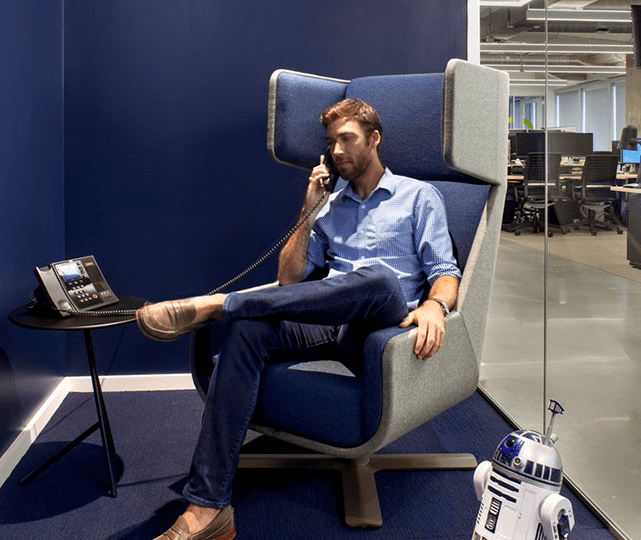 Acoustically sound spaces for taking phone calls diminish the "halfalogue effect." Confidential Client, Houston. Photography © Thomas McConnell.